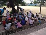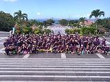 海洋博公園では昼食をとり、美ら海水族館を見学しました。「サメ」「ジンベイザメ」大きな魚を見て大興奮!でも、1番人気は「チンアナゴ」でした。その後、自由時間。イルカショー途中でにわか雨が降ってきて、びしょ濡れになったたくさんの子供達。