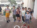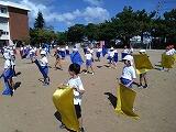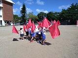 10月10日(木)1年生が運動場で初めて玉入れの練習をしました。前日は、体育館でエアー玉入れの練習。真剣な眼差しでした。今日は、広い運動場です。昨日教えてもらったポーズも決まっていました。