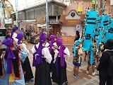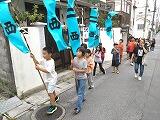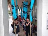 10月13日(日)今日は、「那覇大綱挽」でチンク隊の本番の日です。朝から子供達は元気に集合。衣装に着替え、気持ちが盛り上がっていきます。集合写真では、少し緊張気味でした。でも、本番では、堂々と国際通りを行進。とても素敵な一日でした。練習から係わってくれた保護者及び地域の皆さん、本当にありがとうございました。