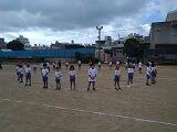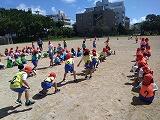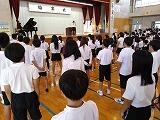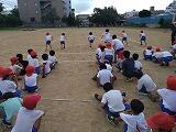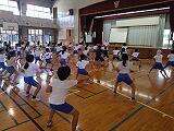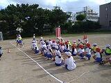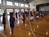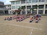 10月23日(水)運動場で体育朝会を行いました。内容は、運動会の開会式の練習です。体育委員がつくった準備体操(歌:怪獣の花唄)や運動会の歌と振り付けを全児童で練習しました。はじめは戸惑っていた児童も最後は本番さながら、大きな声で腕を振り上げていました。本番が楽しみです。