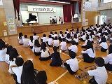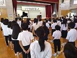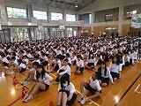 10月11日(金)1学期終業式終了後、1年生は学年集会を行いました。みんなの1学期成長した所や秋休みの過ごし方、2学期の宿題のやり方などいろいろなことを話していました。みんな真剣な顔で聞いていて、聞く態度がとても素晴らしかったです。頑張れ!スーパー1年生!