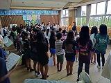朝の活動として、6年生があいさつ運動や清掃活動を行っている。しかし、最近は、那覇地区音楽発表会の本番が迫り、朝から合唱練習です。今まで、6年生の背中を見ていた4年生が、ボランティアを開始しました。カッコイイ6年生を目標に頑張っている4年生はとても素敵ですね。
