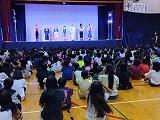 11月18日(月)演劇鑑賞会を行いました。東京から劇団ポプラが来校し、ミュージカル『宝島』を鑑賞しました。演技や歌、ダンス、プロジェクションマッピングに子供達は釘付けでした。子供達の鑑賞マナーもとても素晴らしかったです。城岳小学校から将来、ミュージカルスターがでるかもしれませんね。