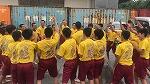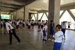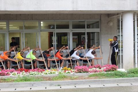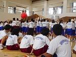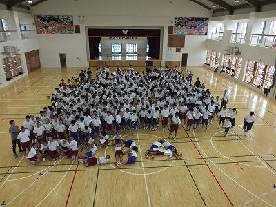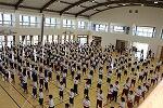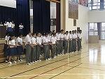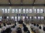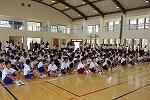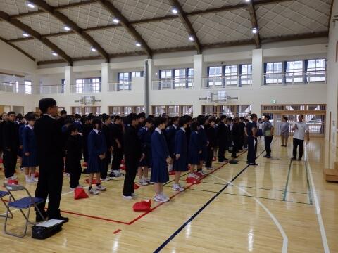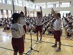 城熱博(学習発表会)の全体スケジュールの確認と校長先生からの激励がありました。最後には、集団演技の内容に