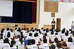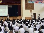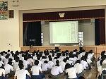 7/2(火)の朝会から1校時にかけて、少年犯罪防止教育講演会を行いました。