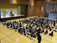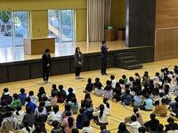 朝会では校長先生のお話、新しい先生の紹介などがありました。
