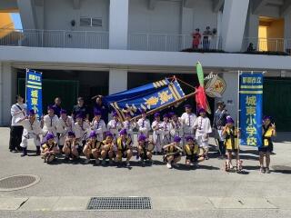 そして首里中学校を会場にした旗頭我栄(ガーエー)では城東小学校の旗頭も参加しました。