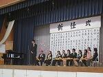 入場した後は、新しい先生方の紹介、そして、花束贈呈です。今年度は、校長先生、教頭先生をはじめ、城東幼稚園の職員やヘルパーの方々も合わせて18名の先生方が城東小学校に赴任されました。