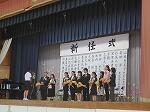 まずは、新任式です。3月に親しんだ先生方と別れ悲しい気持ちもありましたが、新しい先生方との出会いです。その新しい先生方は、子どもたちの作った花道を通って入場してきました。