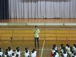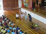 総合や遠足などで勉強した沖縄戦のことを群読や歌、三線を使っての演奏などで表現してくれました。歌声もとても澄んでおり、下級生のみんなは、息をのんで聞いていました。