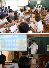 夏休みに入ってすぐですが,先生方は,子ども達のための授業作りと自身の指導力向上を目指して,校内研修を行っています。「クラウド活用での授業改善」や「道徳の授業作り」「学級レク」「算数の授業作り」について学びました。