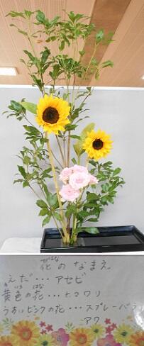 毎日暑い日が続いています。そんな中でも,ひまわりの元気な花とピンクのスプレーバラのやさしさにホッと一息つかせられます。
