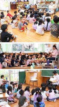 1学期前半最後の1・2年生への読み聞かせです。みんなお話の世界に引き込まれています。