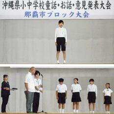 童話・お話大会 投稿日時 : 2023/09/26 校長 「第74回沖縄県童話・お話・意見発表大会 那覇市ブロック大会」の高学年の部(4~6年生)首里ブロック大会が城東小学校で行われました。高学年は,児童が作った『お話』です。城北・大名・城東・石嶺小学校の代表児童が,堂々とした態度で生き生きと発表しました。