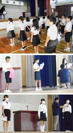 1学期終業式 投稿日時 : 2023/10/06 校長 今日は『1学期終業式』前半は68日と後半28日の合計96日間が,学校に通った日数でした。1学期にがんばったことと2学期にがんばりたいことを2・4年生が代表で発表しました。どの代表の児童も自分の考え・意見をしっかりと持って発表していました。