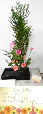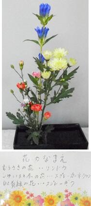 今週の生け花 投稿日時 : 2023/10/04 校長 ピンクの大きなスカシユリが左を向いていて,その右側には,紫のリンドウの花と黄色いオンシジュームが配されています。そして後ろには,赤い野草ワレモコウと今か今かと咲くのを待つスカシユリのつぼみが見守っています。