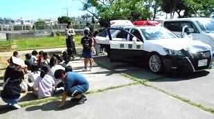 3年生の学習で,警察官を招いてお仕事の内容をお話しいただきました。実際のパトカーも観察しました。