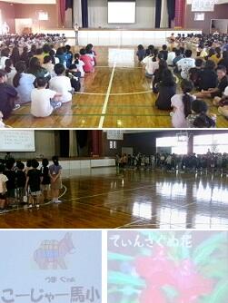 音楽朝会 投稿日時 : 2024/09/26 校長 音楽朝会を行いました。沖縄のわらべ歌『こーじゃー馬小』と『てぃんさぐぬ花』を全児童で歌いました。『こーじゃー馬小』では,曲に合わせてジャンケンをします。また,『てぃんさぐぬ花』は,その歌の歌詞の意味を知らせ,気持ちを込めて歌うようにしました。