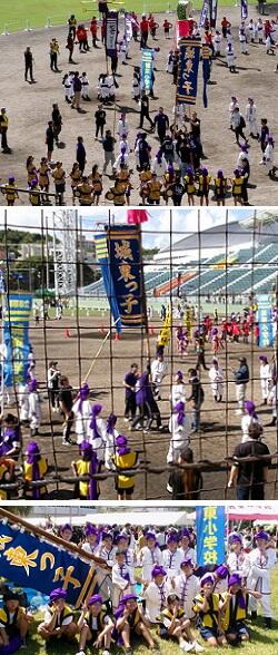 10/6(日)『やる気・元気 旗頭フェスタ in なは』が沖縄セルラースタジアム那覇で開催されました。那覇市内33校の小中学校が集い,ブロックごとに演舞を行いました。日頃の練習の成果が上手く出せました。