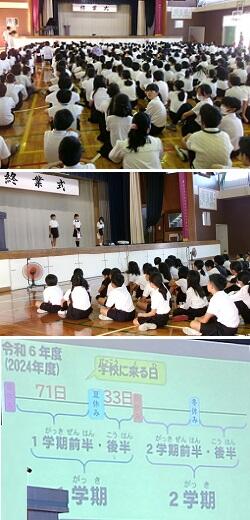 今日は,1学期最後の登校日『1学期終業式』を行いました。2年生と4年生が代表であいさつをしたり,校長あいさつを通して,1学期に頑張ったことを振り返ったりしました。