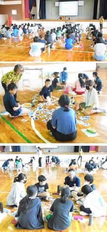 沖縄県立博物館・美術館の出前授業がありました。美術館班主任学芸員の玉城さんによるアートカードの取り組みです。絵を見て題名とその理由を考えて発表し合ったり,自分たちで決めたテーマから絵を選び,その理由を発表し合ったりしました。