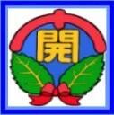 「上の赤い部分」は、文化の中心那覇と未来へ羽ばたくたくましさを表し、「中央の開」は校名を表すと同時に、美しい未来を開くことを象徴している。