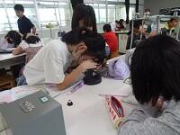 海洋体験スタッフさんの紹介 真剣な眼差し、さすがトップリーダーたちです!まずは、ジェルキャンドルづくり…貝やミニチュアを組み合わせて…