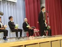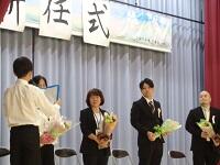 1校時、体育館では新しい先生方を迎える新任式を行いました。