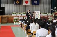 児童全員に修了認定を行ったあと、校長からは琉球王国時代の偉人である蔡温についての話がありました。