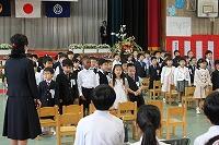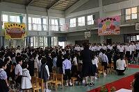 グッデイ・グッバイをみんなで歌ったあとに、離任者が児童の間を通ってから体育館を後にしました。