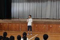 お話朝会では、校長がこれまでの学校行事や児童の活躍を紹介しました。