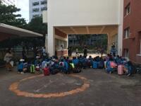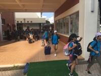 1年生から3年生までは教室、4年生はふれあいプラザ、5年生と6年生は体育館での実施でした。