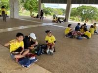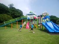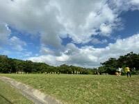 部屋に荷物を置いたら、青空の下で体を動かして遊びました。