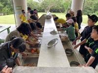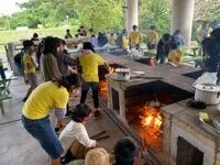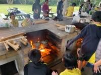 まき係、ご飯係、カレー係に分担してのカレーライス作りです。