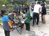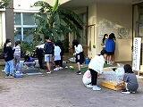 高い所のほこり落とし、太い枝の剪定、西門壁への「湧田焼のかけら」の装飾、おやじの会による「ケンケンパー」のペンキ塗り。休日にもかかわらず参加下さり誠にありがとうございました。(^▽^)/
