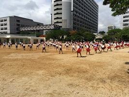 開会式で歌う「ゴーゴーゴー」の練習です。