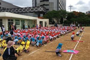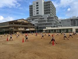 幼稚園児から6年生までが勢揃いして、元に戻った運動場で整列しました。