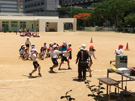 那覇警察署からの呼びかけで昨年度から結成されており、主に登校時の他の児童への声かけなどを行います。
