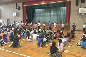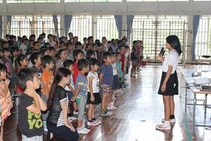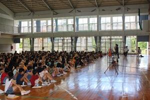 全児童が体育館に集まって、平和集会を行いました。