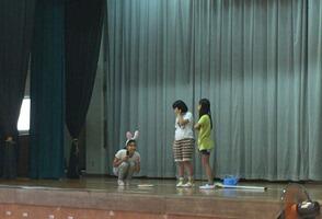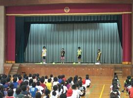 飼育委員会の普段の仕事について、実際の様子を劇にして伝えました。