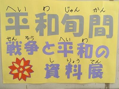 また、戦争時のパネル写真や平和を考えるきっかけになる掲示をしています。