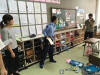 4年2組の教室では、不審者に応対した職員の動きについて、警察官の方から助言をしてもらいました。