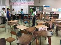 今回は不審者が4年2組の学級に侵入したと想定しての取り組みです。