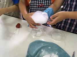 理科クラブでは、ドライアイスを使った実験をしていました。