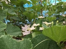 ヒョウタンの花は白い色をしています。