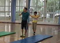 技を組み合わせたり、もう少しできれいにきまりそうな技に磨きをかけたりしながら、いい汗を流す5年生の児童でした。
