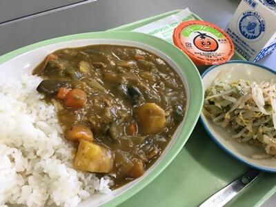 夏休み明け最初の給食は、夏野菜がたっぷり入ったカレーでした。