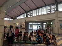 4年生の子供達、駅の構内で整然と並んで待つことができました。