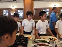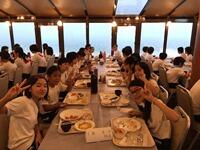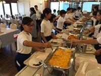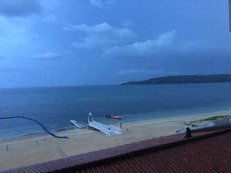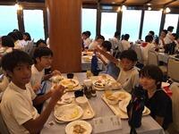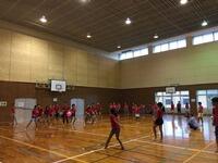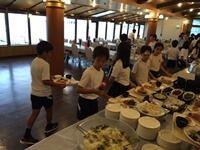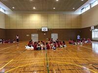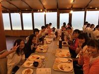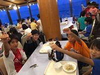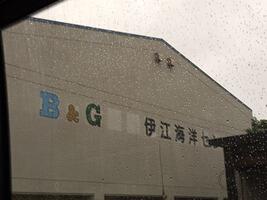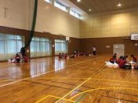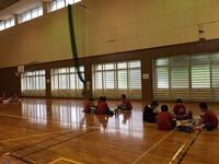 B&G伊江島海洋センターで昼食をとり、体育館で過ごしています。