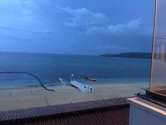 一瞬だけ晴れましたが、土砂降りの続く1日目の午前中です。